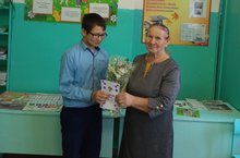 7 нче класс укучысы – Н.И.Әхмәтхуҗин математика укытучысы Энҗе апаны “Укытучылар көне” белән котлады./ Ученик 7 класса Ахматхузин Н.И. поздравил учителя математики Энзе Хаертдиновну с днём Учителя.