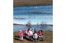 Чалманарат авыл башындагы күлләвеккә аккошлар кайтты. “Ак каен” балалар бакчасы нәниләре аларны карарга бардылар./На лужайку возле села Чалманарат прилетели лебеди. Малыши детского сада “Ак каен” ходили за ними присматривать.