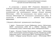 Педагог-китапханәчебез - Ә.Р.Исрафилова “Иң яхшы мәктәп китапханәчесе - 2022” республикакүләм бәйгенең район этабында II урын алды. Котлыйбыз!Уңышлар телибез./Педагог-библиотекарь А.Р.Исрафилова заняла II место на районном этапе республиканского конкурса “Лучший школьный библиотекарь - 2022”. Поздравдяем! Желаем успехов.