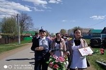 Бөек Җиңүгә багышланган митингта башлангыч класс укучылары Ә.Р.Исрафилованың “Әтиебез үлмәде, ул исән!” дигән әсәрен сәхнәләштерделәр. Шигырьләр, җырлар бәйрәмне тагын да тулылындырды. Җитәкче укытучы: Р.С.Әмирова./Ученики начальных классов на митинге, посвященном Великой Победе поставили пьесу А. Р. Исрафиловой "Отец не умер, он жив!". Стихи, песни наполнили праздник. Учитель-руководитель: Р.С.Амирова.