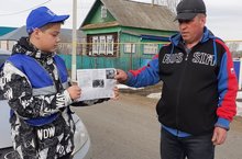 ЮИД отряды члены С.Камалетдинов машина йөртүчеләргә буклет таратты./Член отряда ЮИД С.Камалетдинов раздал водителям буклеты.