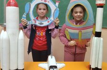 Яркая зона для фото с ракетами и звездами вызвал у детей неподдельный восторг и интерес к науке.