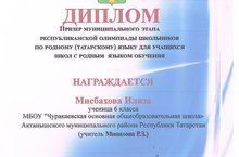 Туган тел фәненнән 6 нчы сыйныф укучысы Мисбахова Илиза призер булды. Укытучысы Миназова Р.З. Котлыйбыз!