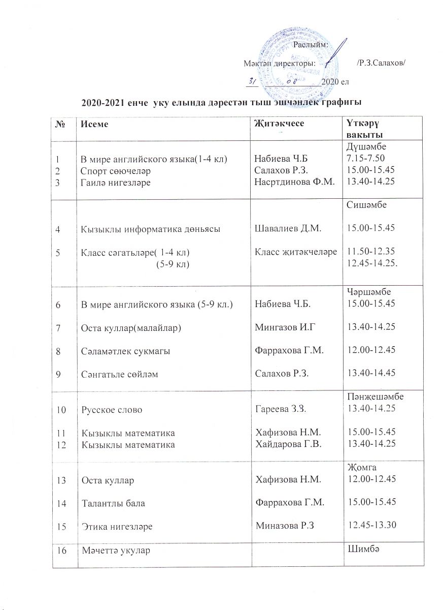 Расписание работы спортивных секций в ШСК / МСКспорт секцияләренең эш расписаниесе