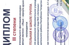 Мэктэпкэ эзерлек Б торкеме балалары "Тел-рухи донья козгесе" тобэкара бәйгедә катнашып lll дэрэжэ лауреат булдылар. Бәйге кысаларында балалар өч телдә - татар, рус, инглиз телләрендә чыгыш ясадылар. Котлыйбыз, яңа уңышлар телибез!