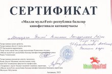 Тәрбиячеләребез Лотфуллина Ләйсән Глүс кызы һәм Ибрагимова Альбина Рәшит кызы «Милли мультfest» республика балалар кинофестивале бәйгесендә “Могҗизчы Тәлти” мультфильмы белән зона этабында катнашып Сертификатка ия булдылар. Аларга киләчәктә дә зур уңышларга ирешүләрен телибез!