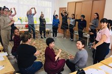 Балалар тиз генә киенергә, махсус баскычтан төшәргә өйрәнделәр.