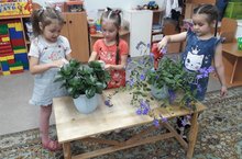 Бакчабызда балаларга музей,юл йөрү кагыйдәләре турында белем һәм күнекмәләр бирү белән бер рәттән, даими рәвештә экологик тәрбия чаралары да алып барыла .Һәр ел фасылы үзенчә матур, һәр терек табигать иясе һава торышына яраклашып үсә, үзгәрә. Ә менә бүлмәдәге тереклек безнең тәрбиягә, яратуга мохтаҗ. Без балалар белән төркемебездә үскән гөлләрне тәрбияләү турында сөйләштек, дөрес итеп су сибү, коендыру, төпләрен йомшарту, зур гөлләрнең яфракларын сөртү турында кагыйдәләр белән таныштык, гөлләрнең исемнәрен ныгыттык. Бүлмәбездә безгә сулау өчен кирәкле һаваны чистартучыларның нәкъ менә бүлмә гөлләре булуы турында белгәч, балалар алар турында ешрак кайгыртырга, сакларга, яратырга дигән нәтиҗәдә калдылар.