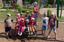 27 июля на акции «ко Дню памяти детей-жертв войны в Донбассе» наш детский сад в парке Победы установили цветы, голубей, шары.