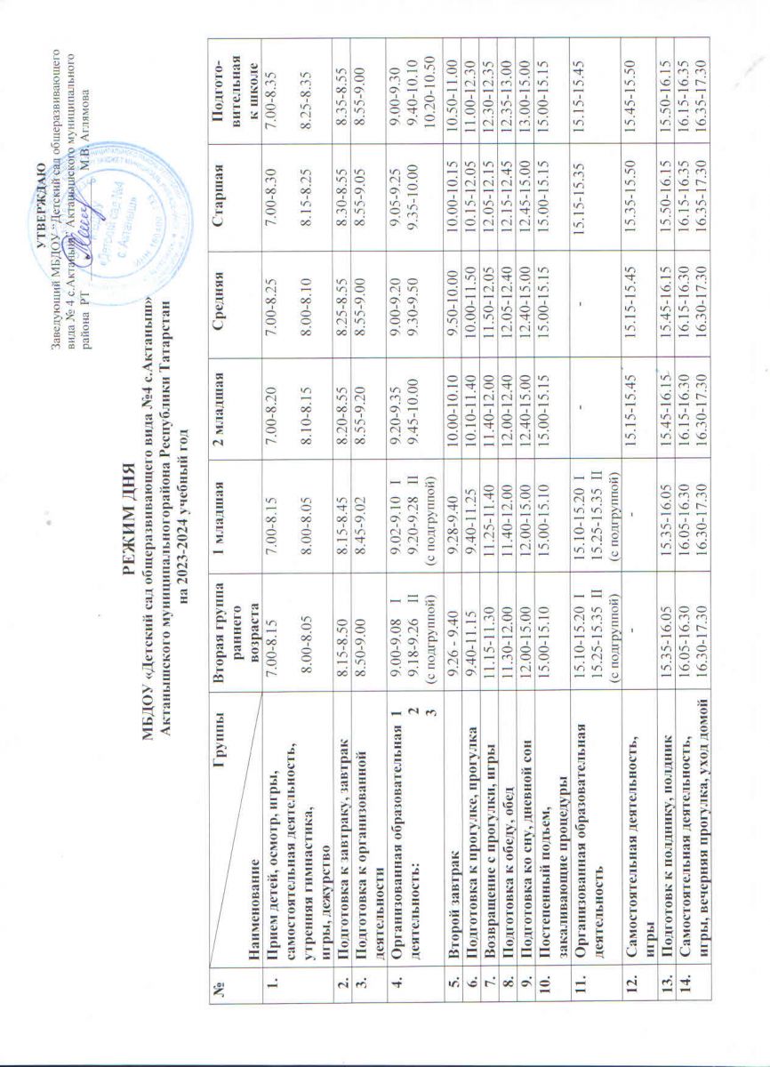Режим дня на 2023-2024 уч.год / Көндәлек режим