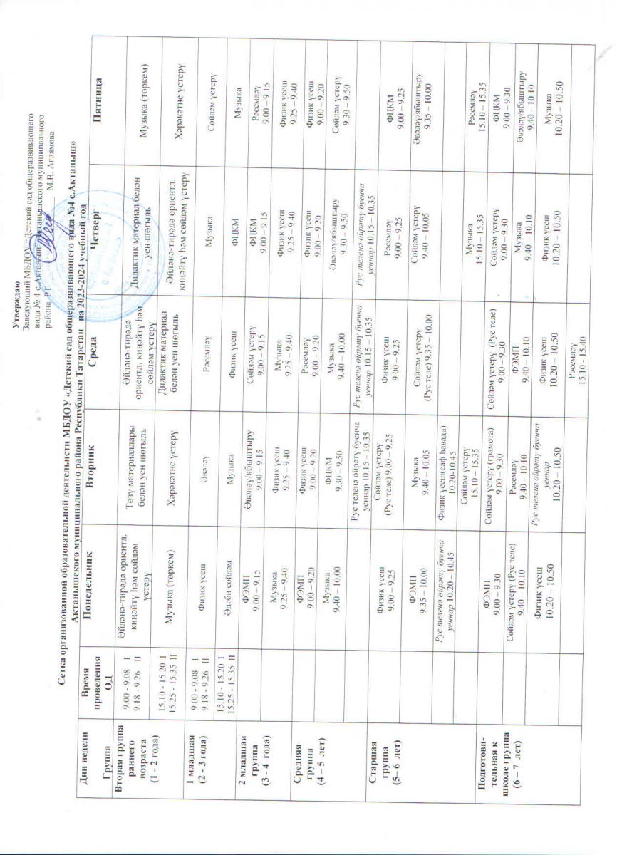 Расписание ОД на 2023-2024 уч.год / Белем бирү эшчәнлеге челтәре