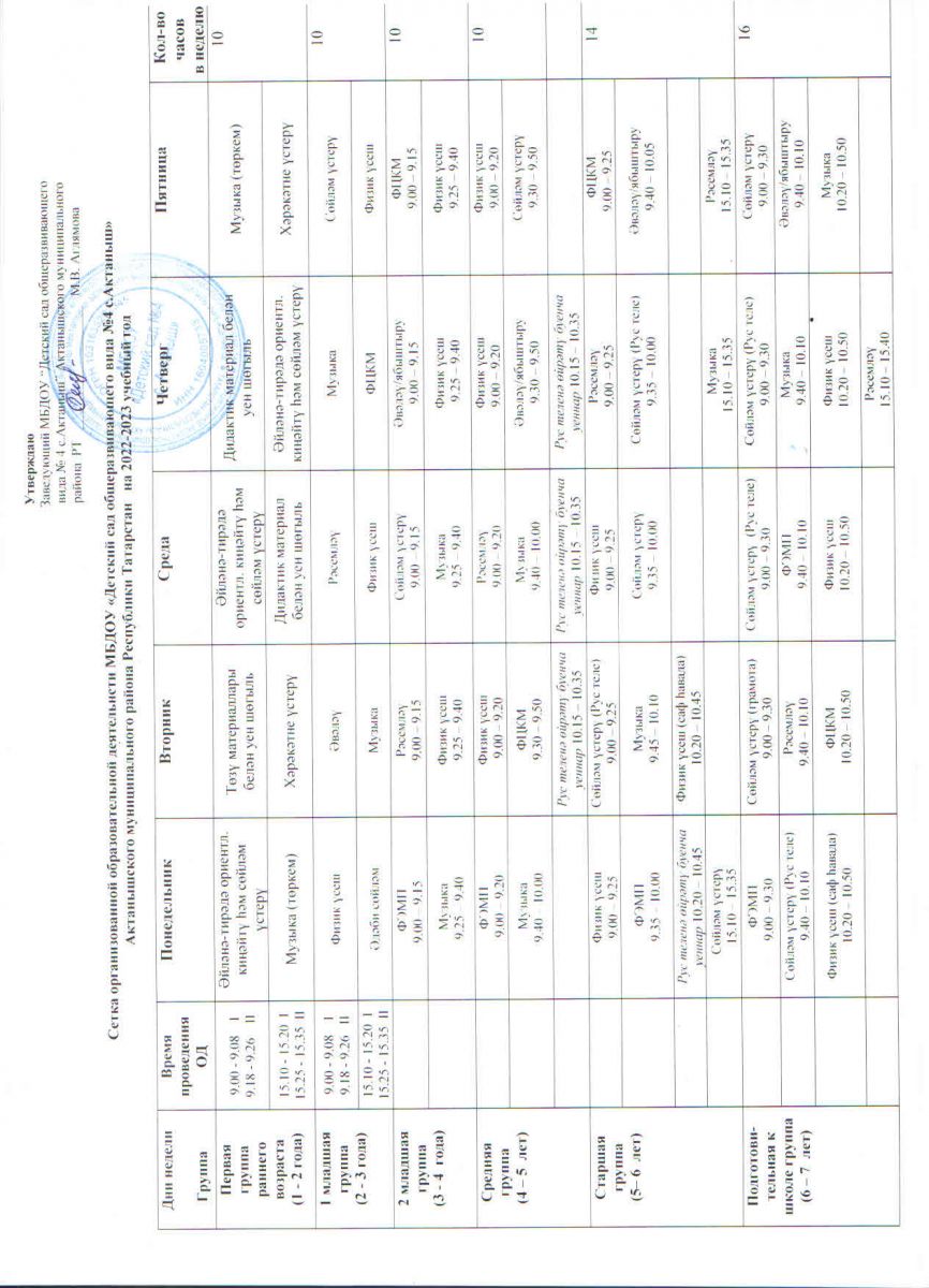 Расписание ООД на 2022-2023 уч.год / Белем бирү эшчәнлеге челтәре