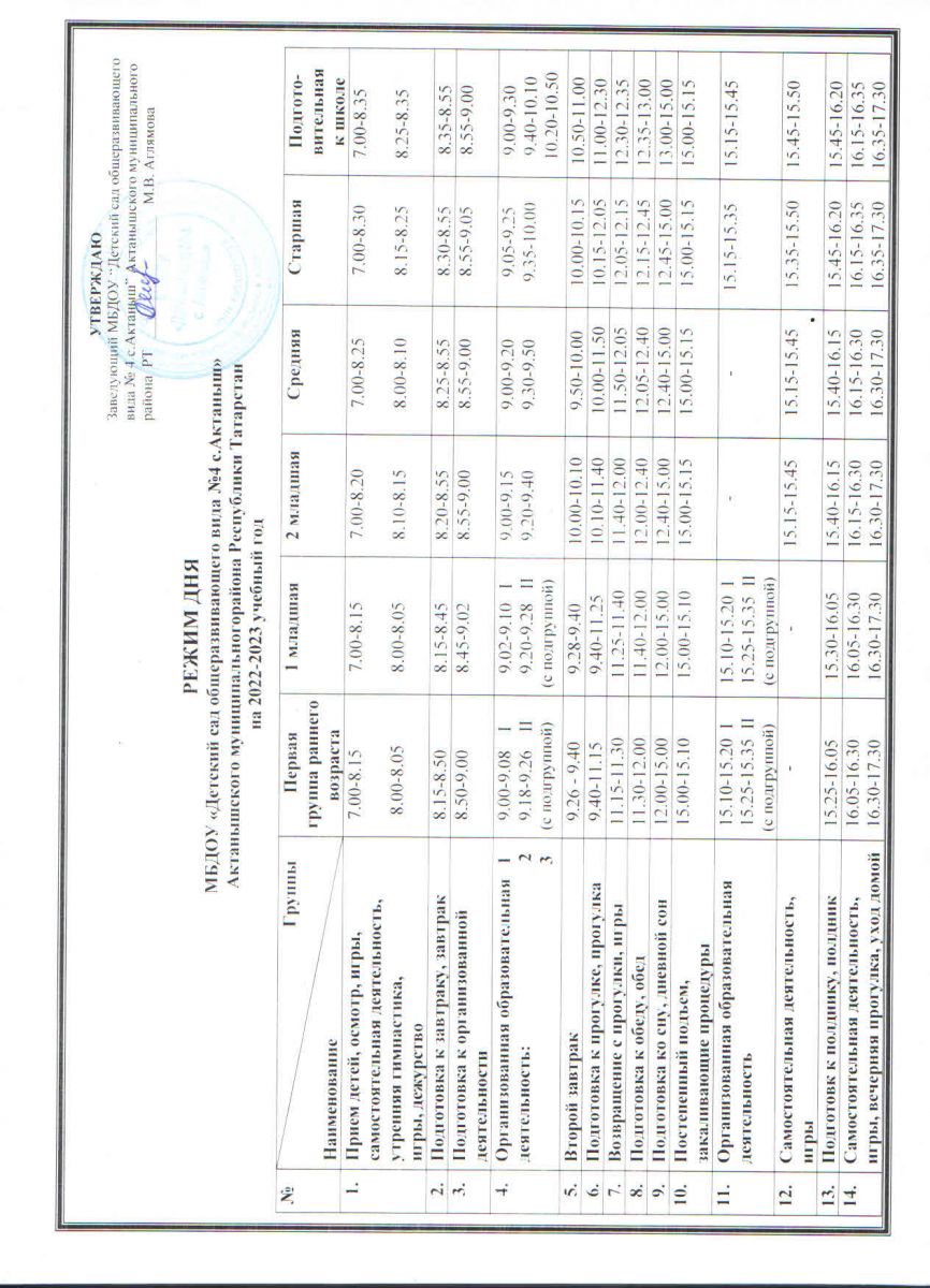 Режим дня на 2022-23 уч.год / Көндәлек режим