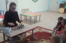 Сегодня мы с детьми 1 младшей группы помимо занятий познакомились с русской народной сказкой "Репка". Цель: заинтересовать детей художественной литературой; развивать творческие навыки в речевой, театрально-игровой деятельности. Мы показали сказку с деревянными персонажами. Сказка о репке очень понравилась детям. Воспитатель: Башарова Айзиля Айнуровна