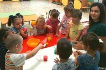 Бүген 1нче кечкенәләр төркемендә күңелле тәҗрибә булды. Алар төрле буяулар ярдәмендә суның төсен үзгәрттеләр. Гади су кызыл, сары, яшел төскә керүен кызыксынып күзәттеләр. Бу тәҗрибә балаларга төсләрне танып-белү, аеру өчен дә файдалы булды. Тәрбияче: Мингазетдинова Л.Р.