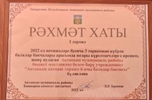 На августовском совещании работников образования района за достижение высоких показателей в рейтинге детских садов Актанышского района за 2021-2022 учебный год наш детский сад был награжден Дипломом I степени.