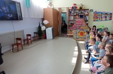 Дети продолжают смотреть мультфильмы на английском языке. По графику каждая группа смотрит мультфильм один день в неделю на английском языке.