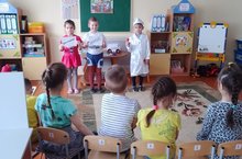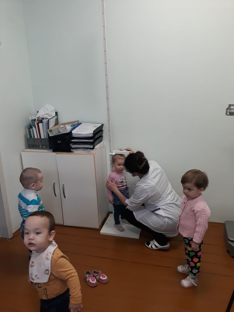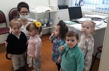 Бүген ясле төркеме балалары беренче тапкыр өлкән шәфкать туташы бүлмәсенә күзәтү ясадылар. Бу бүлмәдә һәрвакыт чиста hәм якты дип аңлатты шәфкать туташы. Үлчәү ярдәмендә балаларның авырлыгын, буйларын үлчәделәр. Тәрбиячеләре: Мингазетдинова Л.Р. Өлкән шәфкать туташы: Ильясова Р.Р.