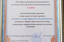 "Актаныш муниципаль районы мәктәпкәчә белем бирү учреждениеләрендә тәрбияләнүчеләр һәм гомуми белем бирү оешмаларының укучылары арасында тукландыруны иң яхшы оештыручы оешма" смотр-конкурсында безнең балалар бакчасы II урынны алды. Пешекчеләрне, балалар бакчасы хезмәткәрләрен котлыйбыз!