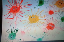 Зурлар төркеме балалары салкын кышкы көнне җылытып, традицион булмаган алым белән төрле төстәге кояшлар ясадылар. Балаларга бу эшчәнлек бик тә ошады. Әлеге ысул белән башка төрле рәсемнәрдә ясау теләге туды.