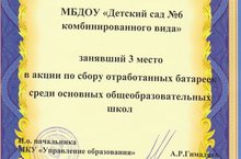 К акции сбора использованных батареек с особым интузиазмом присоединились сотрудники детского сада и родители. Собрав и сдав 3,5 кг батареек, детский сад занял 3 место по району.