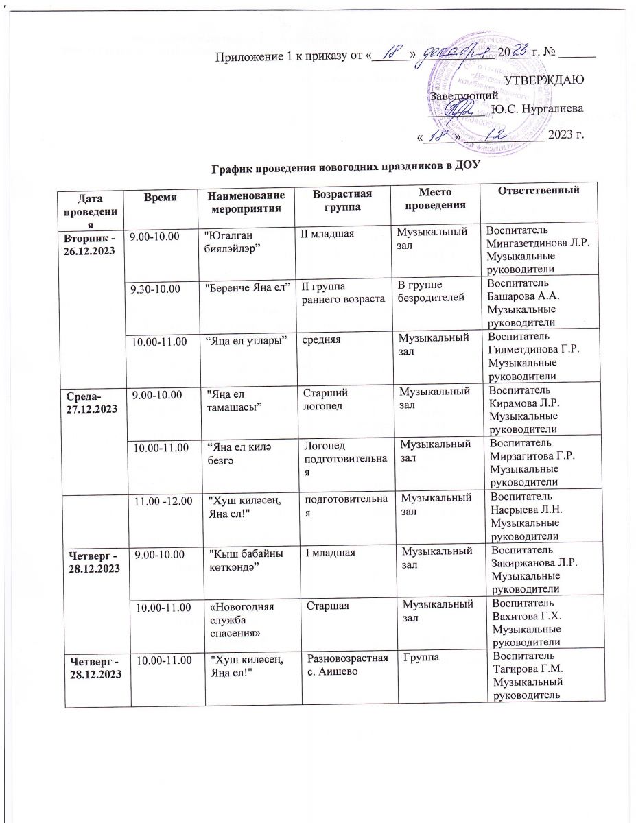 Воспитатель: Вахитова Г.Х. - График проведения новогодних утренников/Яңа ел иртәләре графигы 15.12.2023