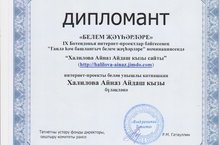 Татарстан Республикасы Мәгариф һәм фән министрлыгы оештырган "Белем җәүһәрләре" IX Бөтендөнья интернет-проектлар бәйгесенең "Гаилә һәм башлангыч белем җәүһәрләре" номинациясендә безнең музыка җитәкчебез Халилова Айназ Айдаш кызының сайты Диплом белән бүләкләнде. Без аны бу уңышы белән котлыйбыз!. Эшендә тагын да зуррак уңышларга ирешергә язсын!