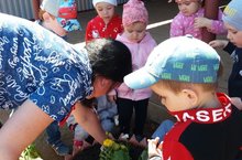 Табигать матурлыгы – рухи гүзәллек тәрбияләүдә зур роль уйный. Ә үз кулың белән төрле-төрле чәчәкләр үстерү, үзең үстергән чәчәкләрнең матурлыгына соклану бала күңеленә матурлык һәм ямь өсти. 1 кечкенәләр төркеме балалары Чулпан апалары белән бергә үз участокларында матурлык тудыру буенча эш алып баралар.