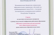 Август конференциясе кысаларында уздырылган "Белем һәм тәрбия - иҗтимагый үсешнең аерылгысыз бер өлеше" темасындагы күргәзмәдә безнең балалар бакчасы лаеклы икенче урынга лаек булды.