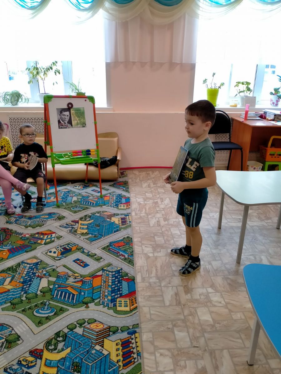 День рождения героя-поэта Мусы Джалиля дети средней группы вспомнили вместе с библиотекарем Лейлой Ринатовной. Встреча была интересной, полезной для детей. Лейла Ринатовна рассказала детям о жизни и книгах Мусы Джалиля, дети, в свою очередь, рассказали стихи поэта. Воспитатель: Насрыева Л.Н.