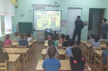 Мәктәпкә әзерлек төркеме балалары ФДКУ "Татарстан Республикасы буенча 15 нче федераль пожар куркынычсызлыгы бүлегенең" отделение командиры Лотфуллин Фәрит Наил улы белән очраштылар.