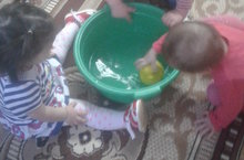 Тәрбияче Галимова Рима Николай кызы ясле төркеме балалары белән тирә-юньне күзәтүне экспериментлар ясап карау эшчәнлеге аша дәвам итә. Балалар бик кызыксынучан. Ниһаять быелгы карны күзәтү, үзлекләрен өйрәнү бәхетенә дә ирештеләр. Бүлмәгә алып кергән карны тотып карап кына калмадылар, ә инде аның эрегәнен көтеп уенчык үрдәкне йөздерергә дә өлгерделәр.