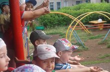 Балаларга хезмәт тәрбиясе бирү максатыннан балалар бакчасының тәҗрибә участогында елда яз-җәй эш гөрли. Бу елдада бу эш дәвам итте. Тәҗрибә участогында һәр төркем балалары, апалары белән берлектә үз яшенә туры килгән яшелчәләрне, бөртекле культураларны утыртып, җәй буена аларны карап, үсешен күзәтеп, көз көне уңышны җыеп алалар