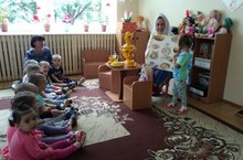 Шул максаттан 20 нче июль көнне, Вәҗиева Хәния җитәкләгән беренче кечкенәләр төркемендә тәрбияләнүче Шагалиев Самирның дәү әнисе белән күңелле очрашу булды. Балалар дәү әнине бик җылы кабул иттеләр. Алдан әзерләнгән чәй табыны артында дәү әни балаларны татар халкының милли ашлары белән таныштырды, әдәплелек кагыйдәләренә кагылышлы сорауларын да тәкъдим итте. Балалар да сорауларга кызыксынып җавап бирделәр.