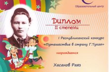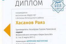 Воспитанник старшей группы Хасанов Раяз(куратор Адгамова Кадрия Васимовна) принял участие в I Республиканском конкурсе "Путешествие в страну Тукая" и занял почетное 2 место в номинации "Видеоролик".