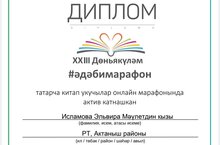 2023 елның 1-21 апрель көннәрендә үткәрелгән XXIII #әдәбимарафон проектында катнашып, гимназиябез китапханәчесе Исламова Эльвира Мәүлетдин кызы финалист дипломына ия булды.