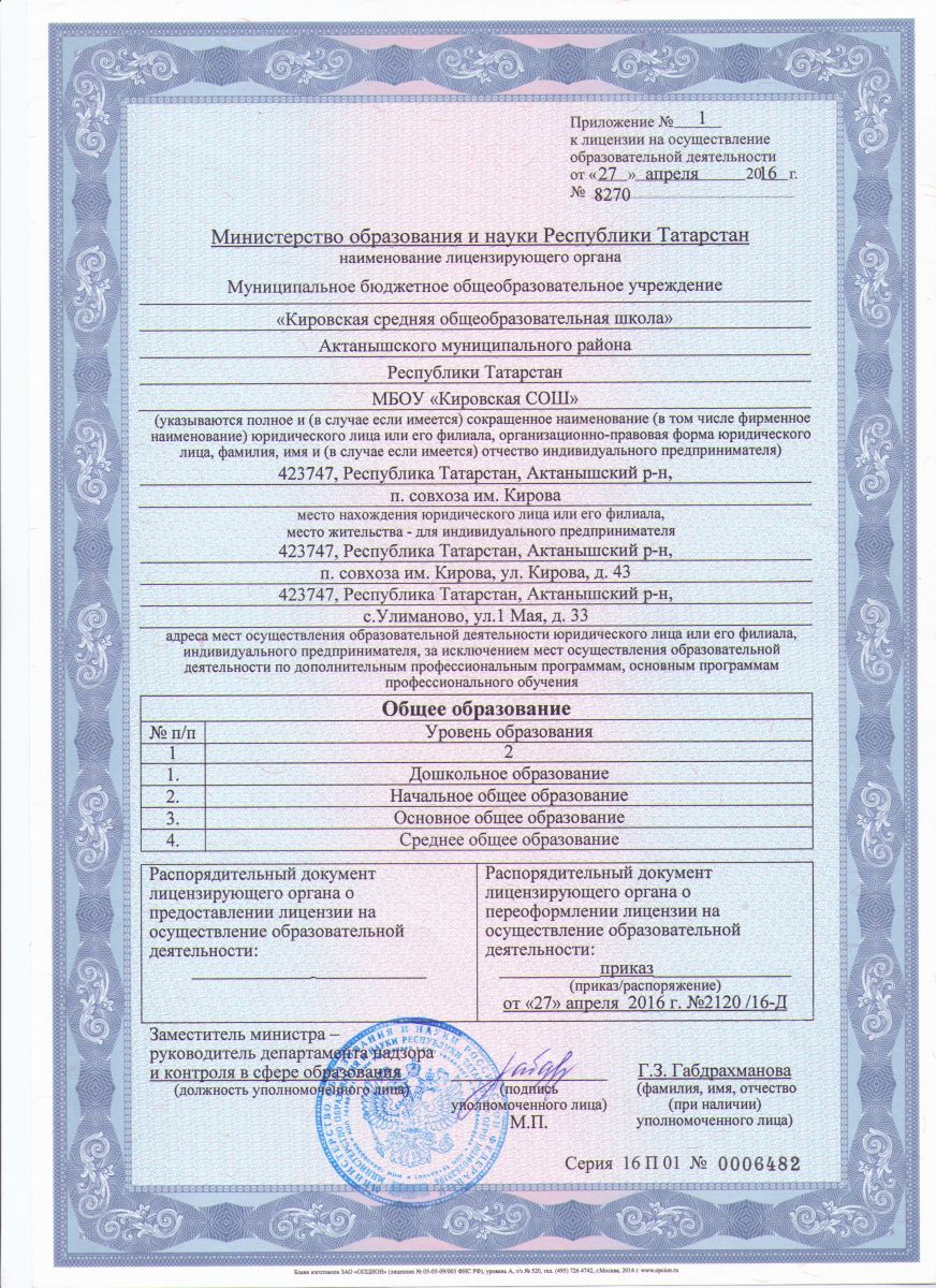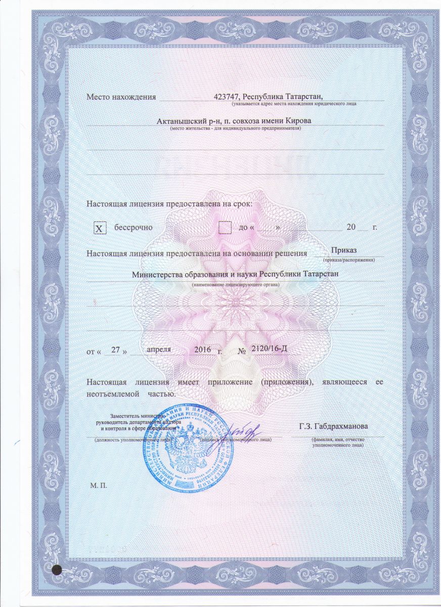Адрес: 423747 Республика Татарстан Актанышский район Посёлок совхоза имени Кирова