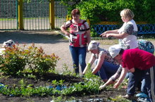 Бүген мәктәп территориясен яшелләндерү һәм матурлау йөзенән, мәктәп алдына чәчәкләр утырттык. Җәй буе безнең мәктәбебезгә матурлык өстәп торсыннар.