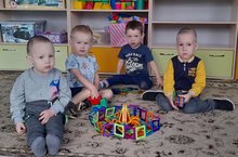 Кечкенәләр төркеменә йөрүче нәни егетләребез төзү материаллары белән аеруча кызыксынып уйныйлар. Тәрбияче апаларының максаты: кечкенәдән ир-егетләребезне төзү эшләре белән якыннан таныштыру, бу хезмәткә кызыксыну уяту һәм хөрмәт тәрбияләү.