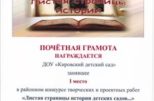 Районк үләмендә оештырылган "Листая страницы истории детских садов" исеме астында узган бәйгедә бакчабыз 1 нче урынга лаек булды. Бакча тарихын барлау бүгенге көндә дә дәвам итә.
