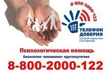8 800 2000 122 - Единый общероссийский телефонный номер «Детский телефон доверия».
