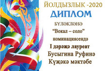 "Йолдызлык 2020" конкурсында "Вокал - соло" номинациясендә Бусыгина Руфинә 1 дәрәҗә лауреат булды һәм диплом белән бүләкләнде