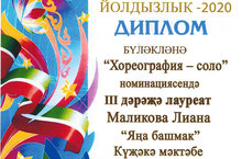 "Йолдызлык 2020" конкурсында "Хореография - соло" номинациясендә Маликова Лиана 3 дәрәҗә лауреат булды һәм диплом белән бүләкләнде