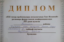 "21 гасыр проблемалары яссылыгында Гаяз Исхакый" регионара фәнни-гамәли конференциясендә 9 сыйныф укучысы Фазлиева З.Ф. 3 урынны яулады.