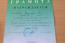 Наша школа заняла 3-место в летней Спартакиаде учащихся по легкой атлетике, посвященной 100-летию образования ТАССР и Дню Пионерии.
