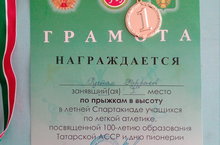 Ученик 9 класса нашей школы Фаррахов Рустам занял 1 - место по прыжкам в высоту в летней Спартакиаде учащихся по легкой атлетике, посвященной 100 - летию образования ТАССР и Дню Пионерии.
