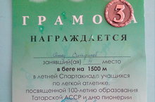 Ученик 9 класса нашей школы Ситдиков Риназ занял 3 - место в беге на 1500 метров в летней Спартакиаде учащихся по легкой атлетике, посвященной 100 - летию образования ТАССР и Дню Пионерии.