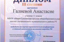 Участие МБОУ «Мари-Суксинская СОШ» в научно-практической конференции и чтениях школьников на языках народов Российской Федерации 29.11.2014