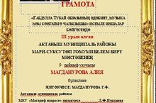 К юбилею поэта с успехами 20.04.2016 Сочинение ученицы 9 класса Магдануровой Алии на тему “Имя Тукая в наших сердцах”,представленное на районный этап конкурса “Образ Тукая в искусстве” заняло III место.(Учитель Магданурова Г.Ф.) Поздравляем и желаем творческих успехов!