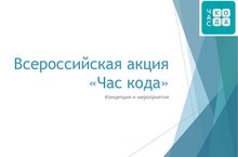 Образовательная акция "Час кода" 10.12.2015 4 декабря 2015 г., в День информатики, стартовала всероссийская образовательная акция “Час кода”, в которой на данный момент уже приняло участие более 700 тысяч учащихся из всех регионов страны! Для учащихся нашей школы тоже проведены данные Уроки. Принять участие в акции и провести необычный урок информатики для своих учащихся может каждый учитель. Все подробности акции Вы можете найти на сайте www.часкода.рф